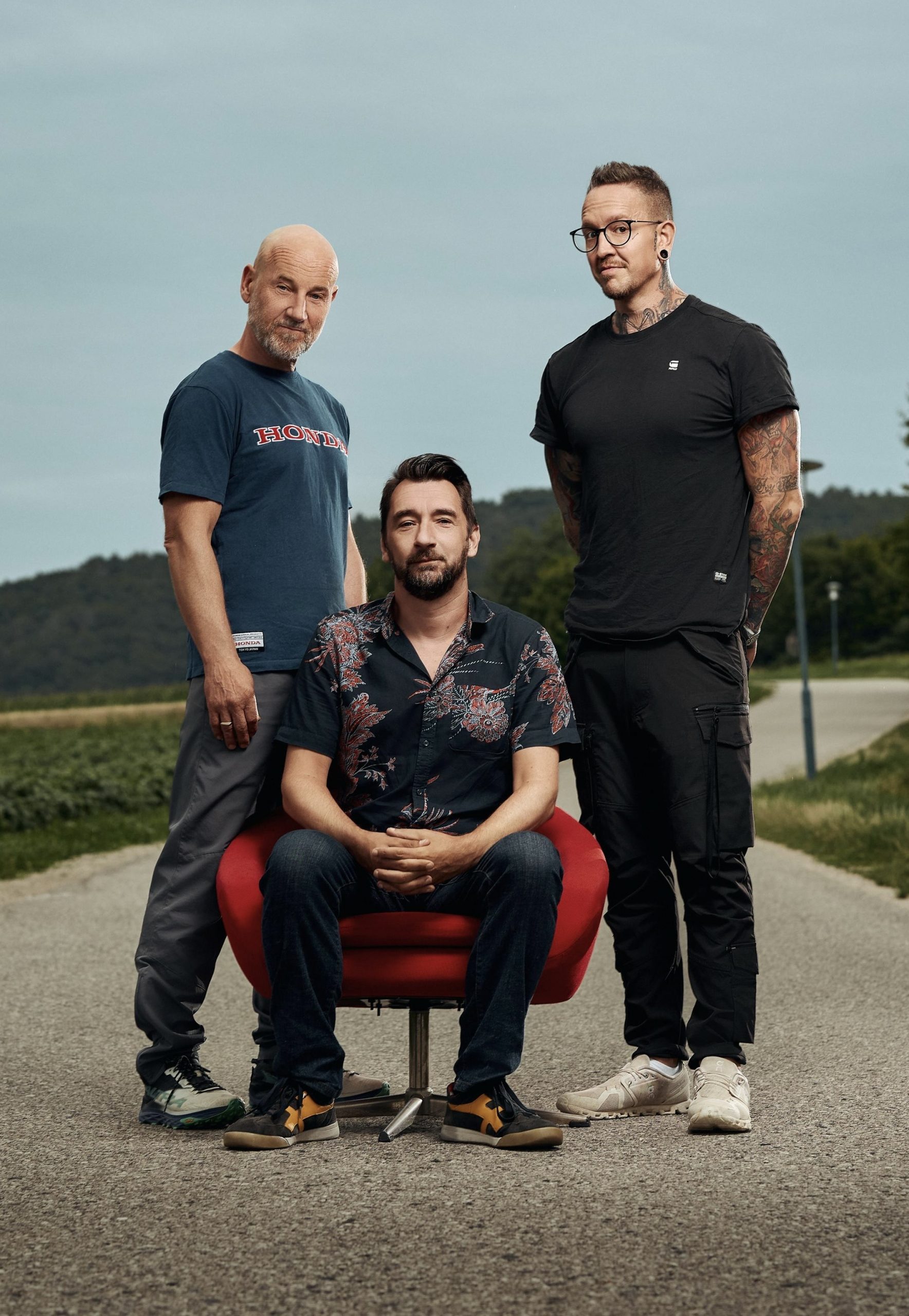 Bernhard Egger – Host der Gesprächsreihe „Auf dem roten Stuhl“ – plaudert mit Roland Düringer und Bernhard Speer über deren Erfolge, die vielen Herausforderungen im Leben, steile Karrieren in Musik und Kabarett, und ob das Spielen vor ausverkauften (Stadt-)Hallen auch verunsichern kann.